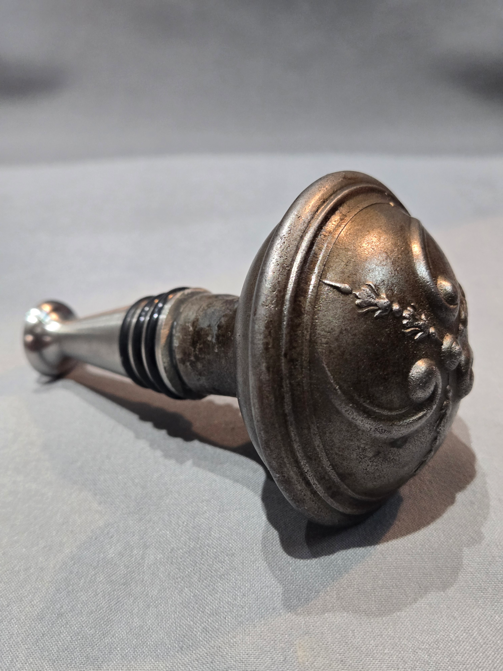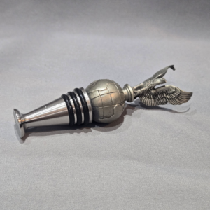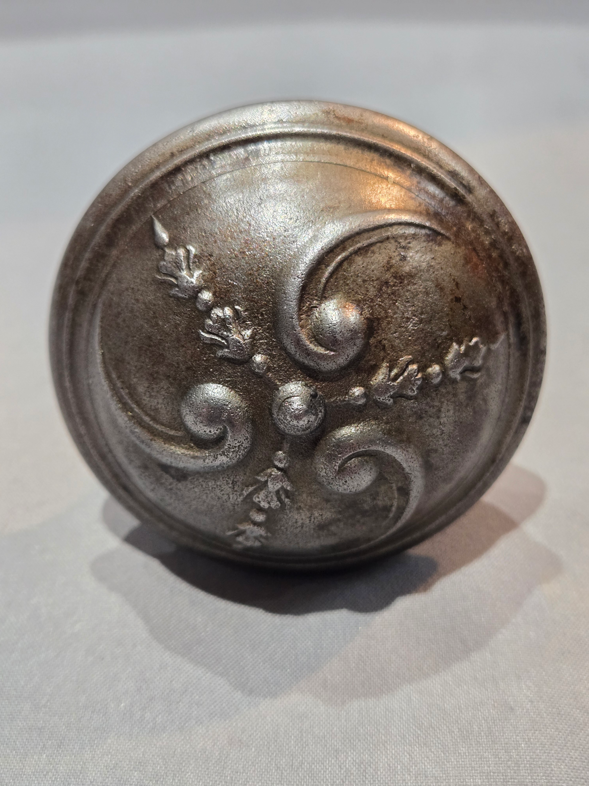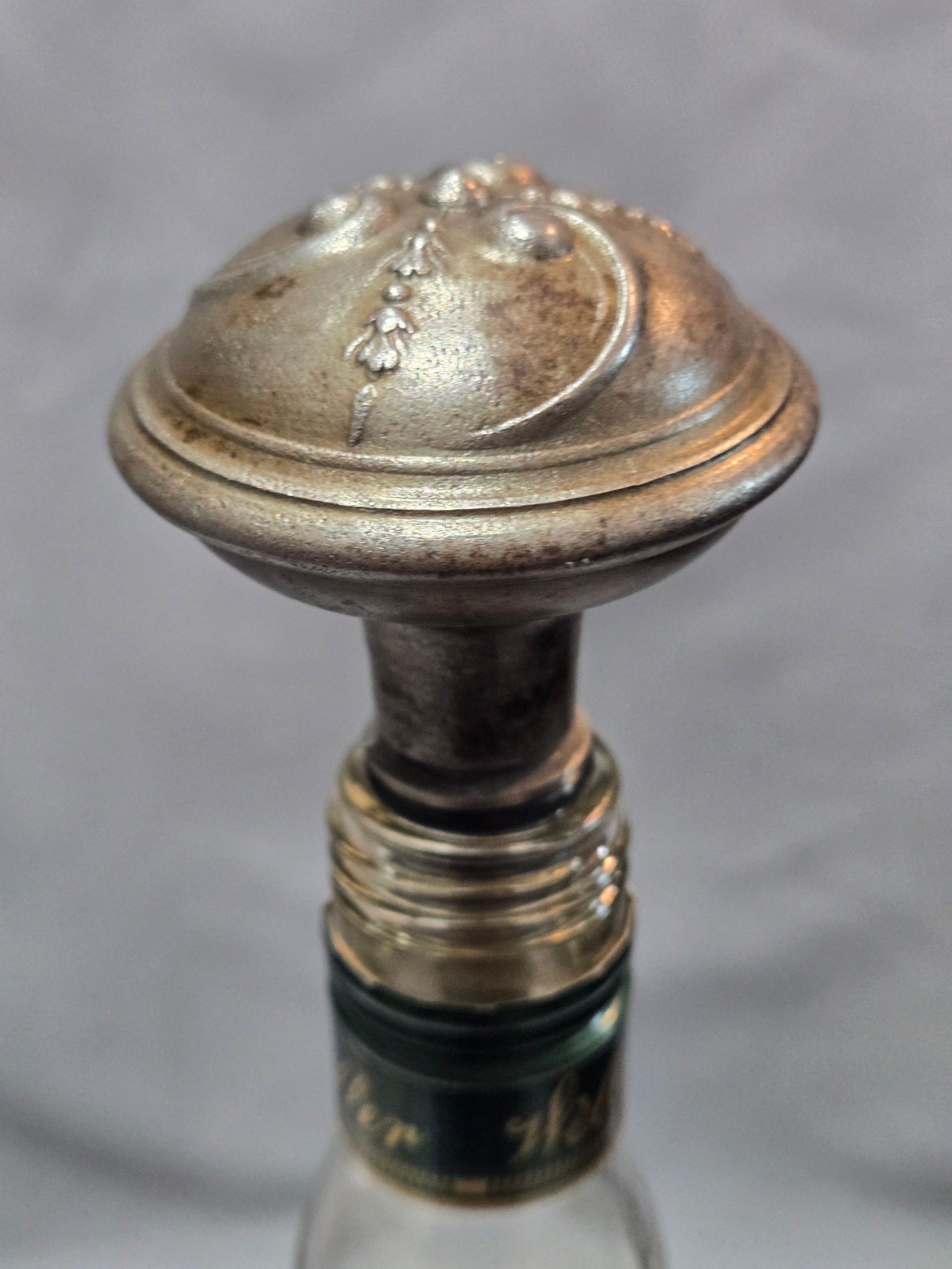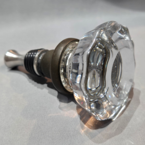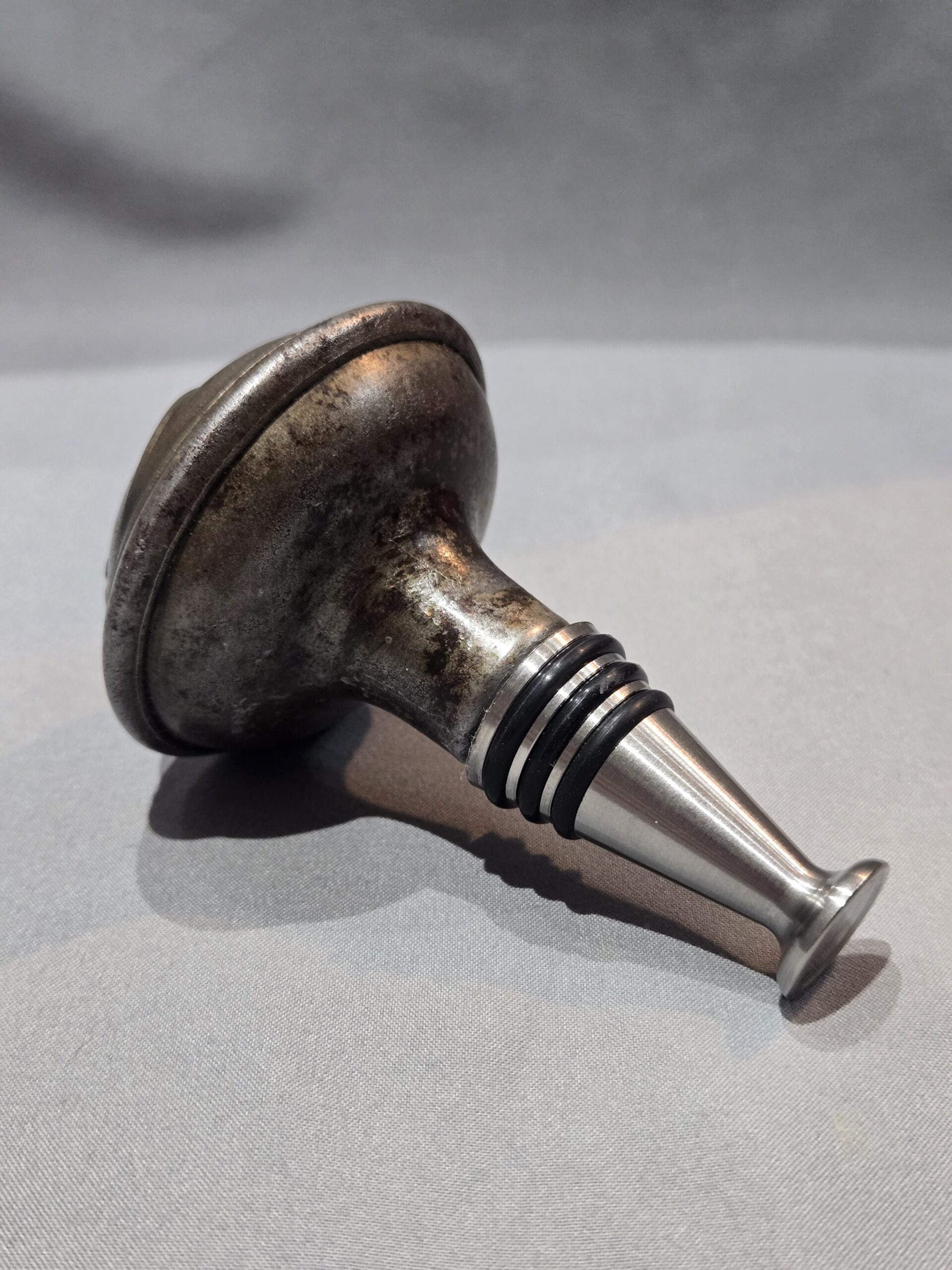 This beautiful, iconic door knob first appeared in a catalog by Russell & Irwin in 1897 and the color is almost perfect. This steel knob sits atop a matching whiskey stopper and is the larger size so it will fit bottles with larger mouths, including the larger, square Jack Daniels but will not fit smaller bottle.